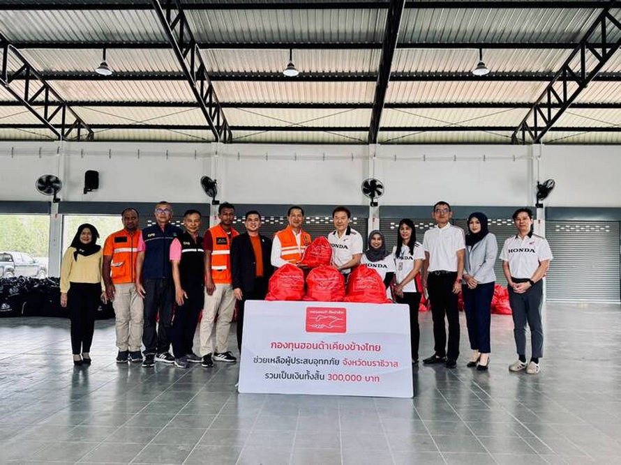 กองทุนฮอนด้าเคียงข้างไทย ภายใต้มูลนิธิฮอนด้าประเทศไทย ผนึกกำลังตัวแทนผู้จำหน่ายรถยนต์และรถจักรยานยนต์ฮอนด้า ร่วมใจช่วยเหลือผู้ประสบอุทกภัยในพื้นภาคใต้ 4 จังหวัด ได้แก่ สงขลา ยะลา ปัตตานี และนราธิวาส โดยส่งมอบถุงยังชีพไปแล้วกว่า 2,400 ถุง รวมมูลค่าความช่วยเหลือทั้งสิ้น 1.2 ล้านบาท และจะทยอยเข้าช่วยเหลืออย่างต่อเนื่องในจังหวัดชุมพร สุราษฎร์ธานี นครศรีธรรมราช และพื้นที่ประสบอุทกภัยและได้รับความเดือดร้อนต่อไป