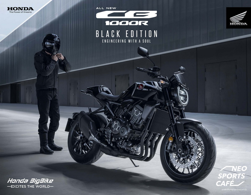 อีกหนึ่งรุ่นใหม่ล่าสุด All New CB1000R Black Edition เน็กเก็ตสปอร์ตไบค์ระดับท็อปคลาส ในสไตล์นีโอสปอร์ตคาเฟ่ มาพร้อมคอนเซปต์ “Engineering with a Soul” ดีไซน์ใหม่ทั้งคัน ไฟหน้าใหม่ ยกระดับความดุดันรอบคันด้วยสีดำ เร้าใจด้วยสุดยอดสมรรถนะจากขุมพลังเครื่องยนต์ 4 สูบเรียง DOHC ขนาด 998 ซีซี หัวฉีด PGM-DSFI ระบายความร้อนด้วยน้ำ ส่งกำลังด้วยชุดเกียร์ 6 สปีด ติดตั้งระบบคันเร่งไฟฟ้า Throttle by Wire สามารถปรับการขับขี่ 4 โหมด ได้แก่ Sport, Standard, Rain และ User พร้อมเสริมสมรรถนะการควบคุมให้การขับขี่สนุกยิ่งขึ้นด้วย Quick Shifter ที่ปรับได้ถึง 3 ระดับ และมาพร้อมระบบ HSTC (Honda Selectable Torque Control) ควบคุมแรงบิดป้องกันล้อหมุนฟรีขณะขับขี่
