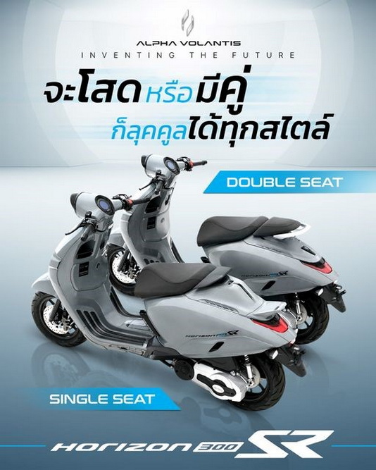 นอกจากนี้ ALPHA VOLANTIS ยังคงนำเสนอรถจักรยานยนต์พรีเมียมออโตเมติกรุ่นแรก HORIZON 300 ที่สุดแห่งความหรูหรามีระดับ พร้อมให้ทุกคนได้สัมผัสถึงความสง่างาม ผสานความล้ำสมัย โดดเด่นไม่เหมือนใคร ภายใต้นิยาม “Shine Your Elegance โดดเด่นทุกความเป็นคุณ” มาพร้อมเครื่องยนต์ขนาดใหญ่ที่อยู่ในมิติตัวรถขนาดคล่องตัว ด้วยน้ำหนักตัวรถเพียง 138 กิโลกรัม ทำให้ขับขี่เคลื่อนตัวง่ายขึ้น ควบคุมน้ำหนักรถสบายขึ้น และใช้งานได้สะดวกยิ่งขึ้น แต่ยังคงความสนุกในทุกการขับขี่ตามแบบฉบับเครื่องยนต์ 300 ซีซี. HORIZON300 มีทั้งหมด 3 สี ได้แก่ สีน้ำเงิน Alpha Blue, สีเทา Hazy Sky Gray และ สีดำ Deep Space Black ราคาจำหน่าย 129,900 บาท