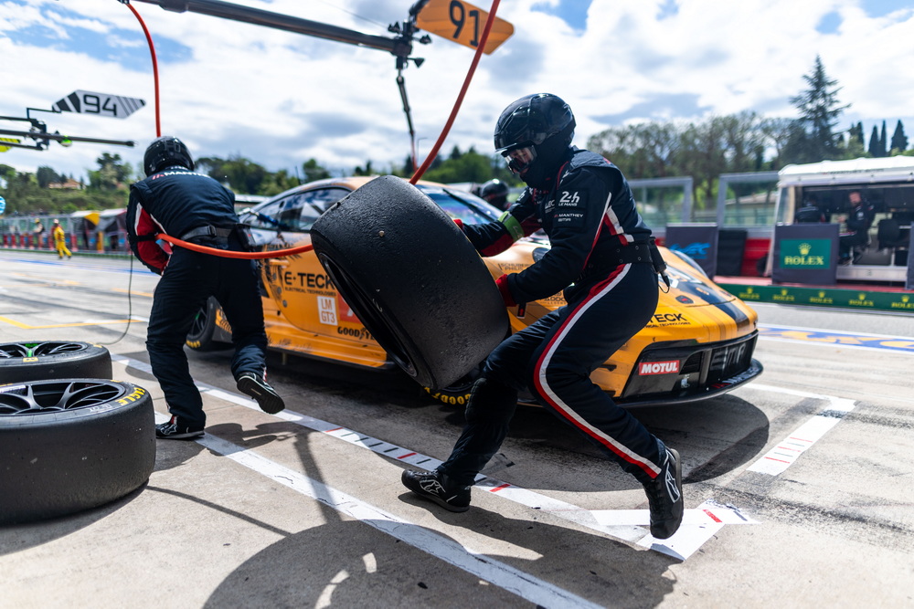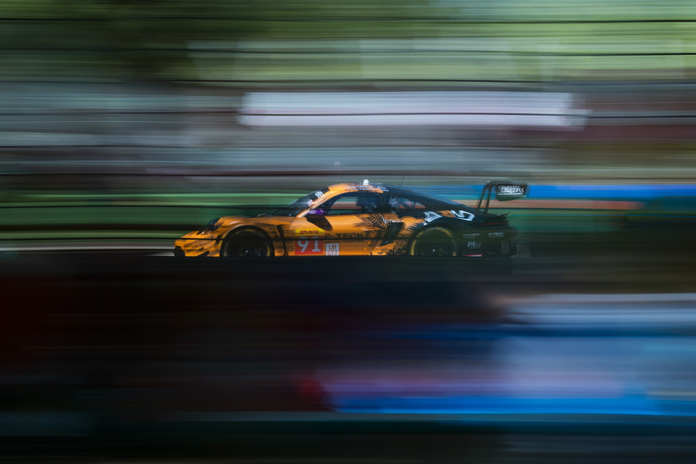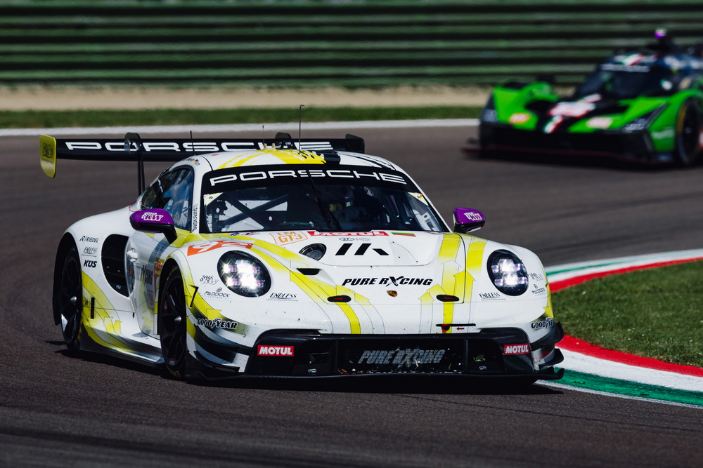 ปอร์เช่ 911 จีที 3 อาร์ (Porsche 911 GT3 R) ที่ส่งลงสนามโดยทีมลูกค้า Manthey PureRxcing เริ่มต้นการแข่งขันที่อิโมลา (Imola) อเล็กซ์ มาลีคิน (Alex Malykhin) สตาร์ทจาก pole position สามารถรักษาตำแหน่งผู้นำไว้ได้อย่างง่ายดาย และป้องกันคู่แข่งด้วยรถพละกำลังสูงถึง 416 กิโลวัตต์ (565 แรงม้า) และเมื่อมีฝนตกลงมาหลังการแข่งขันผ่านไป 4 ชั่วโมง นักแข่งชาวอังกฤษและเพื่อนร่วมทีม โจเอล สตอร์ม (Joel Sturm) จากเยอรมนี และเคลาส์ บาคเลอร์ (Klaus Bachler) จากออสเตรีย ก็ขึ้นนำ แต่การตัดสินใจของทีมที่มีการใช้ Wet Tyres กลับกลายเป็นข้อเสียเปรียบ เพราะเวลาที่เสียไปจากการเข้าพิต ส่งผลให้รถหมายเลข 92 ซึ่งเป็นผู้ชนะในสนามเปิดฤดูกาลที่กาตาร์ ต้องร่วงลงมาอยู่อันดับที่ 3