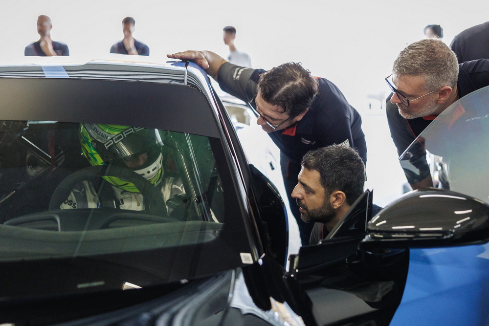 “สภาพอากาศแปรปรวนทำให้วันนี้ยากลำบากสำหรับเรา ฝนตกปรอยๆ ทั้งวัน ทำให้สนามยังคงเปียกเล็กน้อยจนถึงช่วงท้ายๆ ผมจึงยิ่งประทับใจกับความสมดุลและสมรรถนะของไทคานน์ (Taycan) โดยเฉพาะตอนช่วงท้ายของสนามซึ่งจะเป็นเส้นทางตรง และต้องเบรกอย่างหนักเมื่อเข้าโค้ง ‘หอยทาก’ มุมนี้ได้ชื่อมาจากรูปร่างของมัน เพราะทางของถนนเส้นนี้จะค่อยๆ แคบลงเรื่อยๆ และมีรูปแบบคล้ายเปลือกหอยทาก อีกอย่าง การเร่งความเร็วออกจากโค้งหอยทากก็สำคัญมากเช่นกัน เพื่อให้สามารถรักษาความเร็วได้มากที่สุดเพื่อเข้าสู่โค้งซ้ายถัดไป” ลาร์ส เคิร์น (Lars Kern) นักขับรถทดสอบเพื่อการพัฒนาของโรงงาน กล่าวเพิ่มเติม