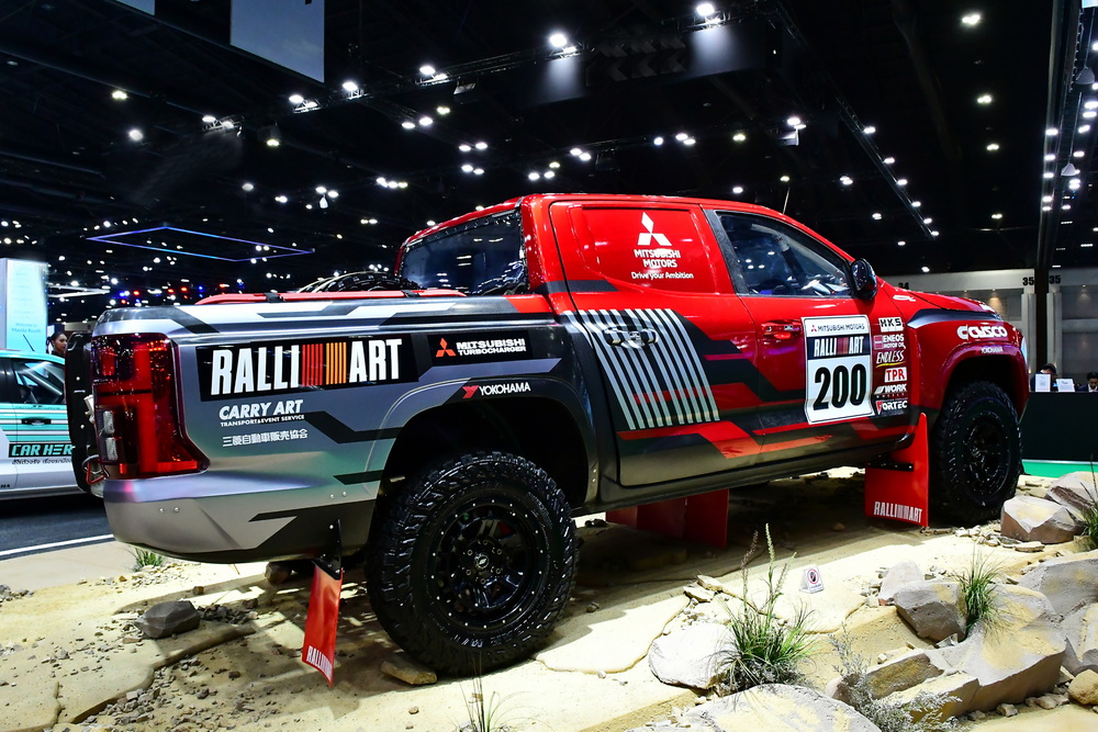 ทั้งนี้ รถแข่งไทรทัน แรลลี่คาร์ ซึ่งจะร่วมแข่งขันรายการเอเชีย ครอสคันทรี แรลลี่ 2024 ได้รับการเผยโฉมใหม่ ที่งานบางกอก อินเตอร์เนชั่นแนล มอเตอร์โชว์ ครั้งที่ 45 โดยยังคงความโดดเด่นที่ดุดันเช่นเดียวกับรถแข่งของปีที่แล้ว ด้วยการใช้สีแดงและเส้นสายสีดำที่เป็นสัญลักษณ์สะท้อนถึง “ลาวา” หินภูเขาไฟที่อัดแน่นด้วยพลังงานอันทรงพลัง และในปีนี้รถแข่งจะยังคงใช้สีแดงอันทรงพลังเป็นสีหลัก เสริมด้วยกราฟิกที่สื่อถึงฝุ่นในการแข่งขันแรลลี่ที่ด้านหน้าและต่อเนื่องไปด้านข้าง ในขณะที่ด้านหลังประกอบด้วยกราฟิกสีเทาที่แสดงถึงลาวาที่พุ่งออกมาและแข็งตัวเป็นหินภูเขาไฟ สะท้อนโฉมใหม่ที่ผสานความโฉบเฉี่ยวคล่องตัว ความแข็งแกร่งทนทาน ความน่าเชื่อถือที่ไว้ใจได้ในทุกเส้นทางของรถแข่งไทรทัน แรลลี่คาร์