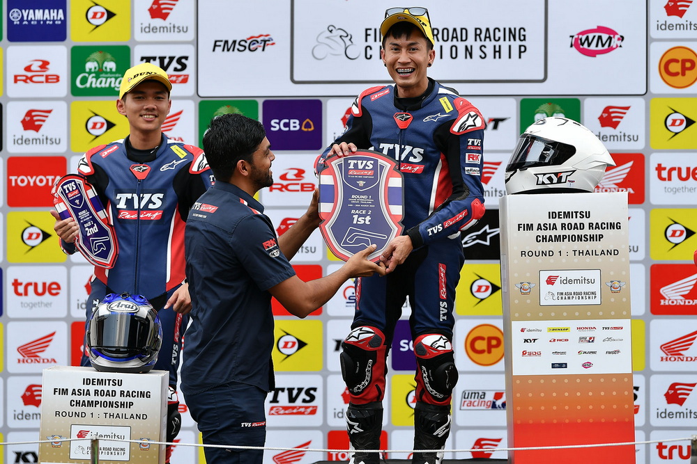 “ชิพ” นครินทร์ อธิรัฐภูวภัทร์ ยอดนักบิดไทยจาก ฮอนด้า เรซซิ่ง ไทยแลน์ เรียกเสียงเฮกระหึ่ม สนามช้าง อินเตอร์เนชั่นแนล เซอร์กิต จ.บุรีรัมย์ หลังบิดคว้าอันดับ 2 ในศึก เอเชีย โร้ด เรซซิ่ง แชมเปี้ยนชิพ เรซแรก ขณะ “เอ้” วรพงศ์ มาลาหวล ผงาดคว้าชัยชนะในศึก ทีวีเอส วัคเมคเรซ แชมเปี้ยนชิพต่อหน้าแฟนชาวไทยอย่างยิ่งใหญ่