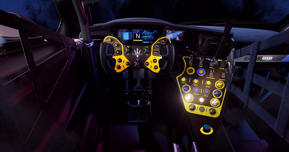 คาร์บอนไฟเบอร์และหน้าจอแสดงผลขนาด 10 นิ้วที่ถูกผสานเข้ากับแดชบอร์ด ทำให้ห้องโดยสารมีความล้ำสมัย ใช้งานง่าย และเสริมด้วยการตกแต่งลายพิเศษ Maserati Corse บนตัวถังสีน้ำเงิน (Blu Infinito) เพื่อให้รถแข่งมีความโดดเด่นมากยิ่งขึ้น