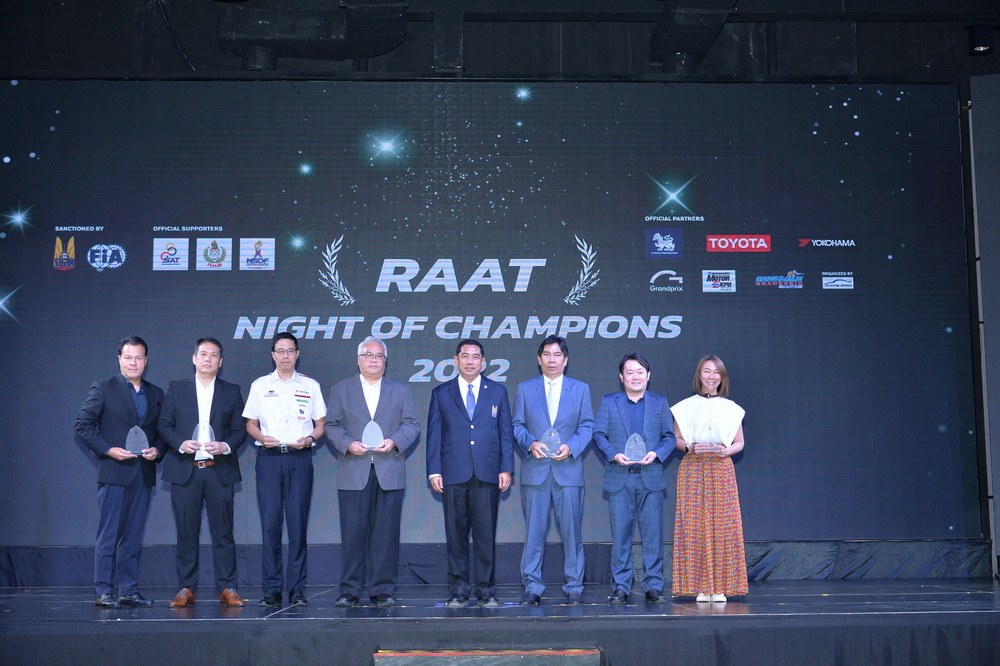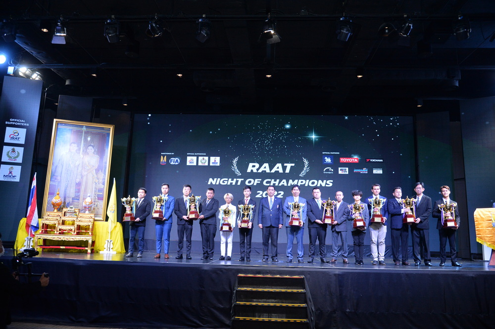 ราชยานยนต์สมาคมแห่งประเทศไทยในพระบรมราชูปถัมภ์ สมาคมกีฬา (ร.ย.ส.ท.) จัดงานฉลองแชมป์ RAAT NIGHT OF CHAMPIONS 2022 มอบถ้วยพระราชทานพระบาทสมเด็จพระเจ้าอยู่หัว มหาวชิราลงกรณ บดินทรเทพยวรางกูร ในวันที่ 2 มีนาคม 2566  ณ ESC Park Hotel พร้อมทั้งฉลองแชมป์ให้แก่นักแข่ง และทีมแข่งที่ประสบความสำเร็จจากการชิงชัยในฤดูกาลที่ผ่านมา ท่ามกลางบุคลากรด้านกีฬายานยนต์ที่เดินทางเข้าร่วมเป็นเกียรติและแสดงความยินดีภายในงาน โดยมี นายสนธยา คุณปลื้ม นายกราชยานยนต์สมาคมแห่งประเทศไทยในพระบรมราชูปถัมภ์ สมาคมกีฬา ประธานในพิธีให้เกียรติเปิดกรวยเครื่องราชสักการะ ถวายแด่ พระบาทสมเด็จพระเจ้าอยู่หัวมหาวชิราลงกรณ บดินทรเทพยวรางกูร พร้อมทั้งกล่าวแสดงความยินดีกับความสำเร็จของผู้ที่ได้รับรางวัล และร่วมผลักดันวงการมอเตอร์สปอร์ต ที่กำลังเติบโตอย่างต่อเนื่อง ให้ก้าวเดินไปในทิศทางที่ถูกต้อง และยกระดับมาตรฐานการแข่งขันให้ทัดเทียมนานาประเทศ