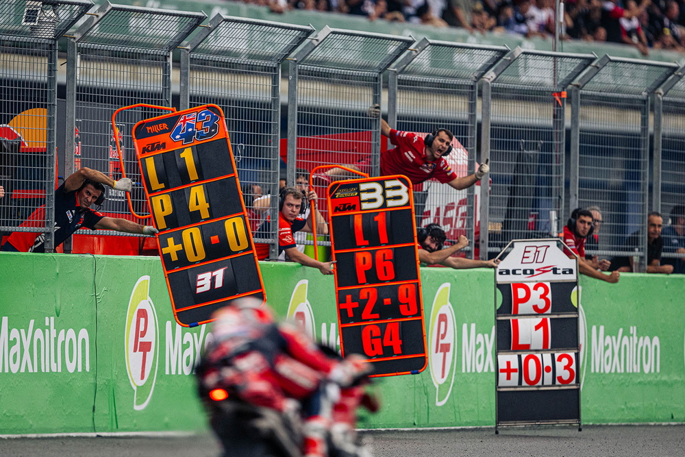 สถานการณ์ลุ้นแชมป์โลกของรุ่นใหญ่ ยังคงดำเนินอย่าเข้มข้น โดยชัยชนะของ “บันยาญ่า” ทำให้สามารถบีบระยะเข้าไปหา “มาร์ติน” เหลือเพียง 17 คะแนน ขณะที่เหลือการแข่งขันทั้งสิ้น 2 กรังด์ปรีซ์ และ 2 สปรินต์
