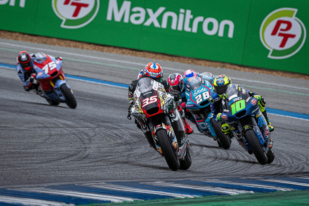 โดยผลการแข่งขันในรุ่นเล็กอย่าง โมโตทรี ต้องมาตัดสินกันถึงโค้งสุดท้าย ชัยชนะตกเป็นของ “ดาวิด อลอนโซ” นักบิดโคลัมเบียนแชมป์โลกปีนี้จาก ซีเอฟ โมโต กาวิโอตา อัสพาร์ ทีม ด้วยเวลา 20 นาที 29.345 วินาที เฉือน “ลูก้า ลูเน็ตต้า” นักบิดอิตาเลียนจาก ซิค58 สควอดร้า คอร์เซ อันดับ 2 เพียง 0.353 วินาที ตามด้วย “คอลลิน วายเยอร์” นักบิดดัตช์จาก ลิควิ โมลี ฮัสควาน่า อินแท็ค จีพี ตามหลัง 0.522 วินาที ส่วน “ก๊องส์” ธัชกร บัวศรี นักบิดไทยจาก ฮอนด้า ทีม เอเชีย ฟอร์มเยี่ยมสตาร์ตจากกริดที่ 25 บิดคว้าอันดับ 17 ตามหลังผู้ชนะ 17.262 วินาที