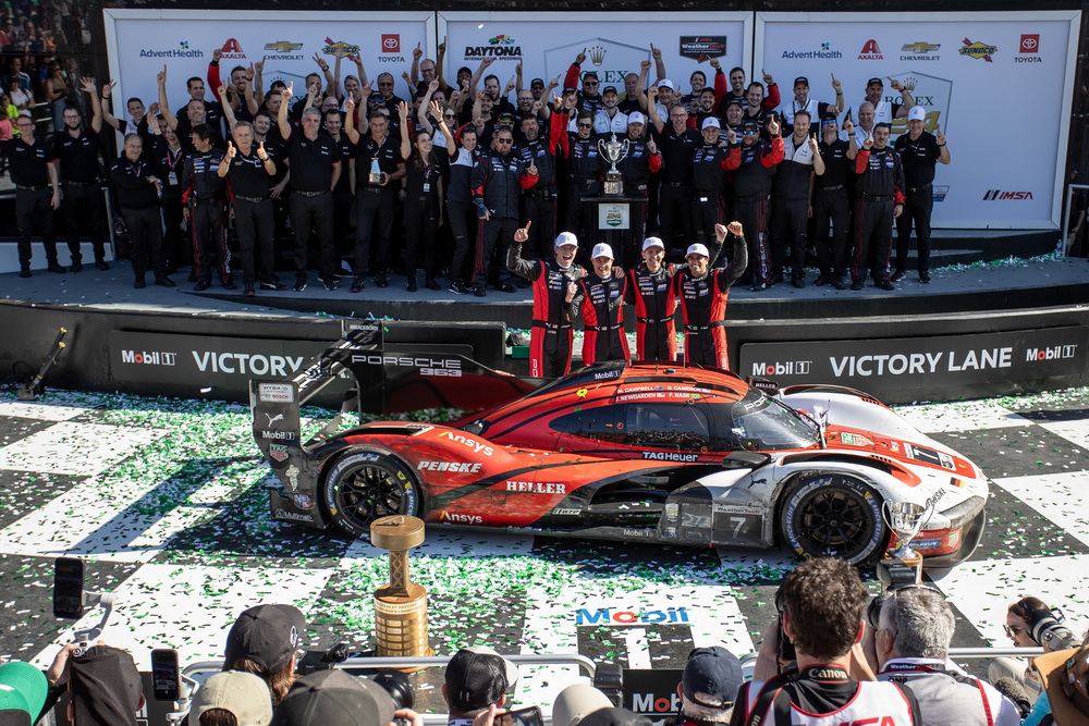 รถปอร์เช่ 963 หมายเลข 7 จากทีม ปอร์เช่ เพนสเก้ มอเตอร์สปอร์ต (Porsche Penske Motorsport) คว้าชัยชนะในการแข่งขัน 24 Hours of Daytona โดยนักขับ เฟลิเป้ นาเซอร์ (Felipe Nasr) นักขับจากบราซิล/ เดน คาเมรอน (Dane Cameron) จากสหรัฐอเมริกา และ แมตต์ แคมป์เบลล์ (Matt Campbell) จากออสเตรเลีย รวมถึง โจเซฟ นิวการ์เดน (Josef Newgarden) ดาราอินดี้คาร์ชาวอเมริกัน ร่วมกันสร้างประวัติศาสตร์ครั้งสำคัญด้วยการคว้าชัยให้กับปอร์เช่ (Porsche) เพิ่มเป็น 19 ครั้ง รถแข่งหมายเลข 6 จบอันดับ 4 ด้วยนักแข่ง มาติเยอ จามิเน็ต (Mathieu Jaminet) ชาวฝรั่งเศส, นิค แทนดี้ (Nick Tandy) สหราชอาณาจักร, ลอเรนส์ วานธูร์ (Laurens Vanthoor) ชาวเบลเยียม และเควิน เอสเตร (Kévin Estre) ชาวฝรั่งเศส ส่วน Porsche 963 ซึ่งเป็นรถที่ได้รับการสนับสนุนจากทีมลูกค้าผู้มีเกียรติ อย่าง Proton Competition และ JDC-Miller MotorSports ก็สามารถคว้าอันดับตามมาติดๆ ในรุ่นเดียวกัน นอกจากนี้ในการแข่งรุ่น GTD Pro รถแข่ง Porsche 911 GT3 R จาก AO Racing ก็คว้าอันดับที่ 2 มาครอบครองได้สำเร็จ