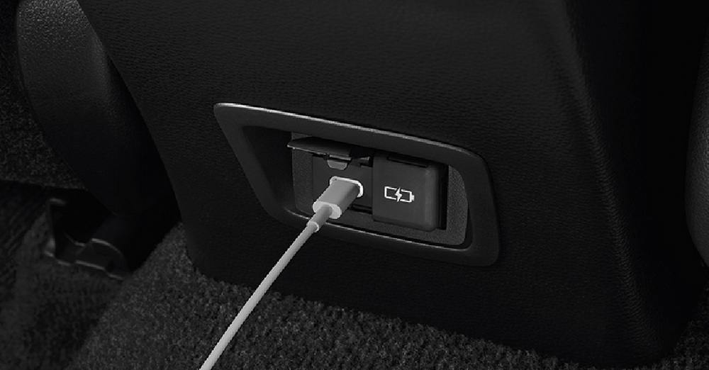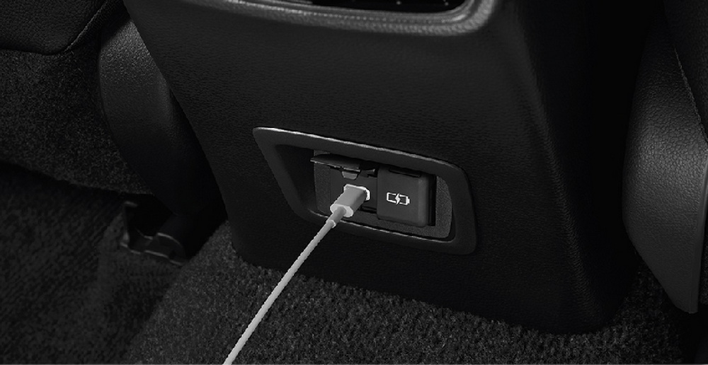- ช่องต่ออุปกรณ์ไฟฟ้า USB ด้านหน้า 2 ตำแหน่ง ในกล่องเก็บของคอนโซลกลาง 1 ตำแหน่งและด้านหลัง 2 ตำแหน่ง
