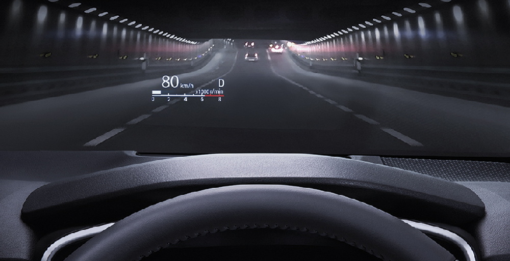 - หน้าจอแสดงผลข้อมูลการขับขี่แบบสีบนกระจกหน้ารถ HUD (Head Up Display)