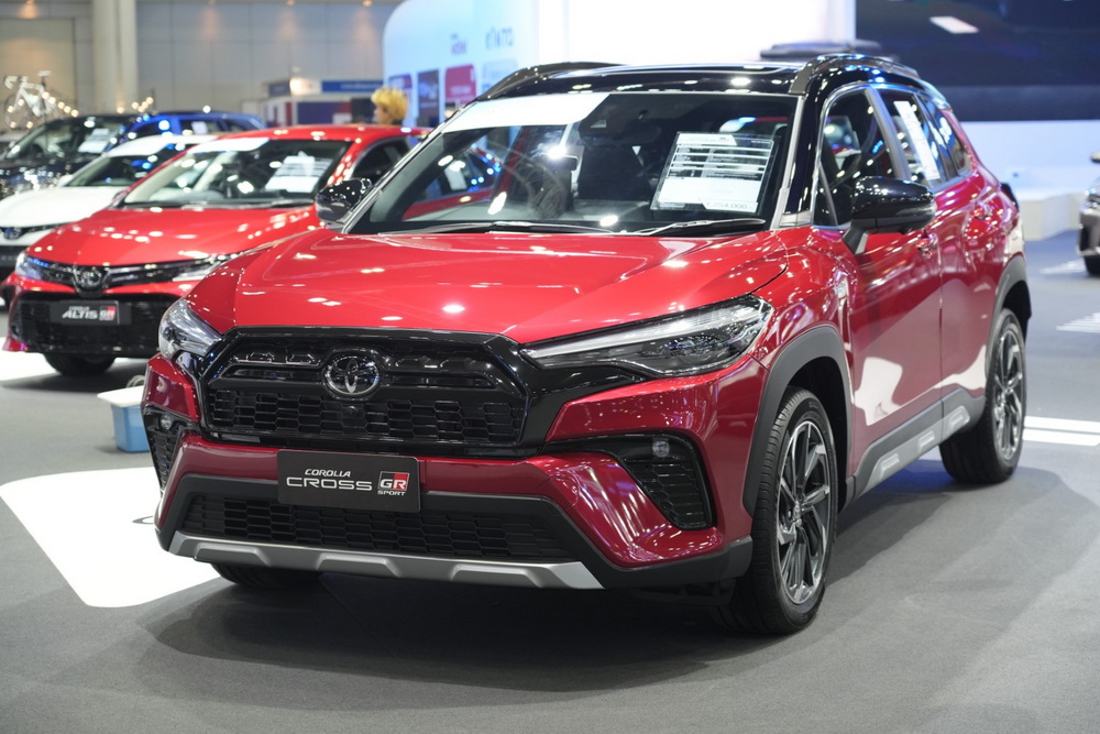 “ดังนั้นสิ่งแรกก็คือการนำเสนอผลิตภัณฑ์ที่คำนึงถึงสังคมแห่งความเป็นกลางทางคาร์บอน โดยโตโยต้าได้แนะนำ CAMRY HEV สู่ตลาดในปี พ.ศ.2552 โดยเป็นรถรุ่นแรกที่นำระบบไฟฟ้ามาใช้ ทำให้ยอดขายสะสมของรถ HEV บรรลุ 173,000 คันในปัจจุบัน ยิ่งกว่านั้นเราได้นำเสนอความสบายใจในทุกด้านสำหรับการใช้งานให้กับลูกค้า ทั้งตัวผลิตภัณฑ์ การบริการหลังการขาย และแพคเกจทางด้านสินเชื่อ นำโดย All-New YARIS CROSS ซึ่งได้รับการตอบรับเป็นอย่างสูงจากลูกค้า และขอขอบคุณการสนับสนุนอย่างดียิ่งจากท่านสื่อมวลชน นอกจากนั้นยังมีรถยนต์ในกลุ่ม HEV ที่หลากหลายตั้งแต่ SUV ไปจนถึงรถยนต์ซีดาน ได้แก่ INNOVA ZENIX, COROLLA CROSS, CAMRY และ COROLLA ALTIS โดยปัจจุบันโตโยต้ามีรถยนต์ในกลุ่ม HEV จำหน่ายทั้งสิ้นถึง 7 รุ่น และยังมีแผนเปิดตัวรถยนต์ไฟฟ้ารุ่นใหม่ๆ เพื่อตอบสนองความต้องการที่หลากหลายของลูกค้า ที่สำคัญกว่านั้นต้องเป็นรถยนต์ที่ส่งเสริมการลดคาร์บอนไดออกไซด์ด้วยเช่นกัน ส่วนแกนหลักที่ 2 ก็คือ ผลิตภัณฑ์ของเราต้องส่งเสริมความสุขของผู้ใช้ โดยนอกจาก HEV เรายังนำเสนอรถยนต์อีโคคาร์ยอดนิยม อย่างเช่น YARIS ATIV, YARIS Hatchback และ MPV 7 ที่นั่ง VELOZ โดยอีกหนึ่งไฮไลท์บนเวทีแห่งนี้ก็คือ All New HILUX CHAMP ที่เพิ่งเปิดตัวไปเมื่อ 2 วันที่ผ่านมา”