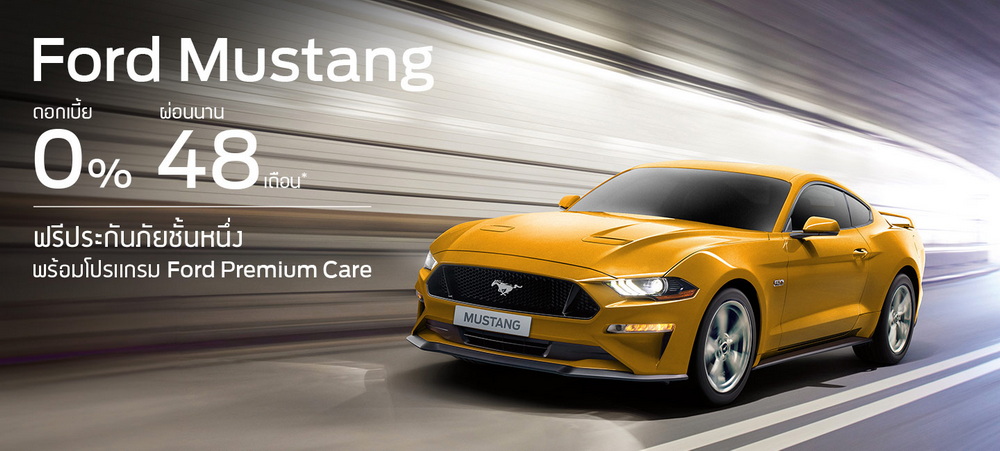 ฟอร์ด มัสแตง รถสปอร์ตระดับตำนาน มาพร้อมแคมเปญสุดเร้าใจ ดอกเบี้ยพิเศษ 0% นาน 48 เดือน ดาวน์ 25% พร้อมแพ็คเกจฟอร์ด พรีเมี่ยม แคร์ นาน 5 ปี หรือ 100,000 กิโลเมตร แล้วแต่ระยะใดถึงก่อน และฟรีประกันภัยชั้นหนึ่ง