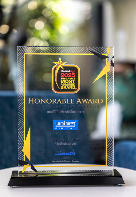 “ลามิน่าฟิล์ม” ตอกย้ำความเป็นแบรนด์ฟิล์มกรองแสงรถยนต์และอาคารอันดับ 1 รับรางวัล 2025 Thailand’s Most Admired Brand แบรนด์ที่ผู้บริโภคเชื่อมั่นสูงสุดในประเทศไทย ต่อเนื่องเป็นปีที่ 11 จากผลวิจัยด้านแบรนด์ที่ได้รับการยอมรับจากนักการตลาดและผู้บริโภค จัดโดยนิตยสารแบรนด์เอจ