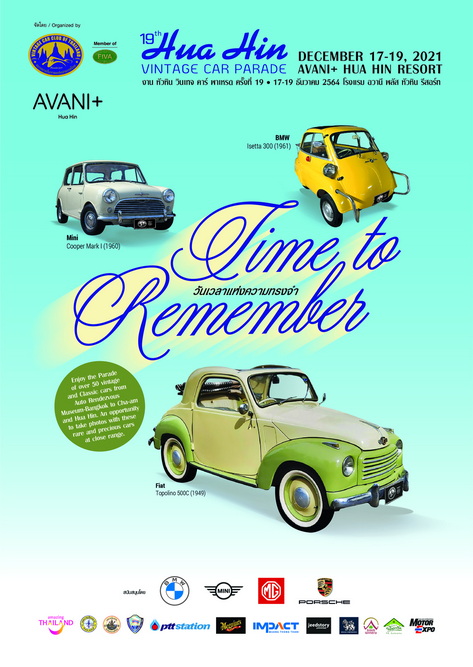 “งานนี้จัดขึ้นภายใต้มาตรการป้องกัน COVID-19 อย่างเคร่งครัด เพื่อให้ประชาชนได้ชมรถโบราณ และรถคลาสสิคที่ทรงคุณค่าตลอดเส้นทาง กรุงเทพฯ-หัวหิน ภายใต้แนวคิด “วันเวลาแห่งความทรงจำ – Time to Remember” เพื่อรำลึกถึงวันเวลาแห่งความสุขช่วงเดือนธันวาคม ซึ่งจะอยู่ในความทรงจำของคนรักรถโบราณ ที่ได้แวะมาเยือนเมืองหัวหินเป็นประจำทุกปี”
