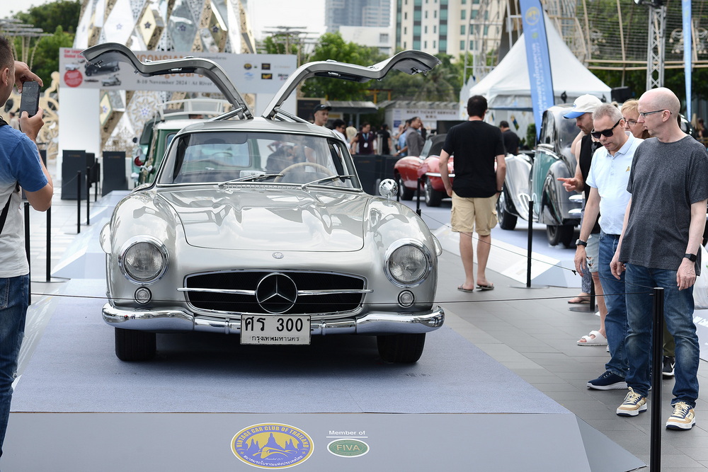 Mercedes-Benz 300SL Gullwing ปี 1955 หนึ่งในรถสปอร์ทที่มีชื่อเสียงที่สุดในประวัติศาสตร์ยานยนต์โลก โดดเด่นด้วยประตูเปิดแบบปีกนกนางนวล มีเสน่ห์ งดงาม น่าหลงใหล และมักถูกเชื่อมโยงกับไลฟ์สไตล์ของคนดังในยุคนั้น เช่น Sophia Loren