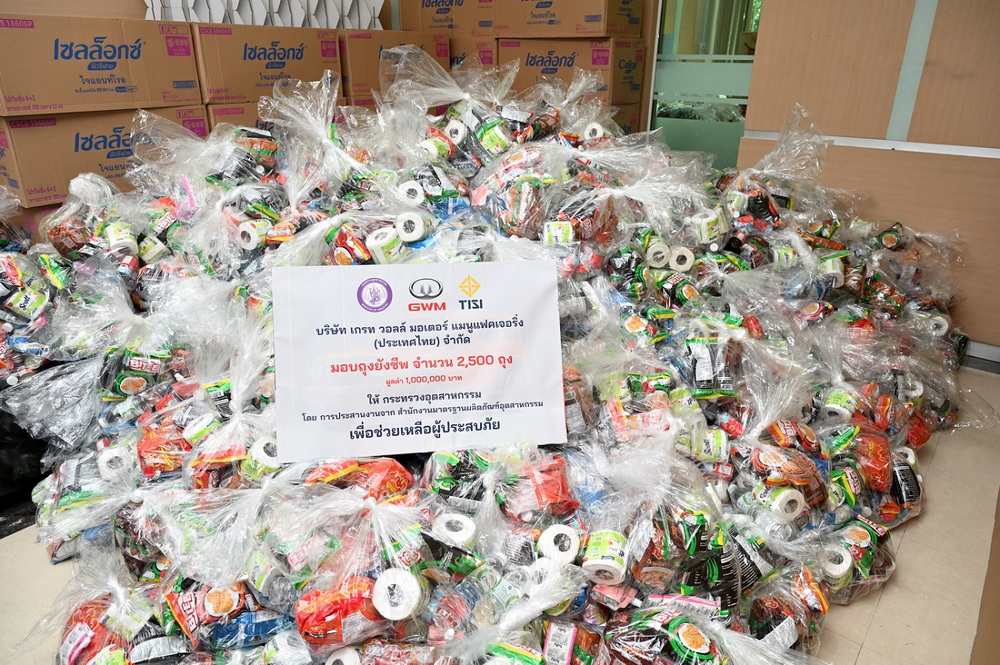 นายณรงค์ สีตลายน กรรมการผู้จัดการ เกรท วอลล์ มอเตอร์ (ประเทศไทย) กล่าวว่า “สถานการณ์น้ำท่วมเฉียบพลันที่เกิดขึ้น ก่อให้เกิดผลกระทบ ในหลาย ๆ ด้านทั้งการดำรงชีวิตประจำวันของผู้คน การทำธุรกิจ การประกอบอาชีพ และอื่น ๆ อีกมาก เกรท วอลล์ มอเตอร์ จึงอยากร่วมเป็นส่วนหนึ่งในการส่งต่อพลังใจและยืนหยัดเคียงข้างคนไทย ร่วมสนับสนุนผู้ประสบภัยให้ผ่านพ้นวิกฤตนี้ไปได้ รวมถึงเป็นการตอกย้ำความตั้งใจของบริษัทฯ ในการช่วยเหลือตอบแทนให้กับสังคม พัฒนาประเทศสู่ความยั่งยืน และความมุ่งมั่นที่จะขับเคลื่อนและฟื้นฟูเศรษฐกิจไทยให้เติบโตอย่างแข็งแกร่ง เกรท วอลล์ มอเตอร์ ขอขอบคุณท่านรัฐมนตรี ผู้บริหารและพนักงานเจ้าหน้าที่กระทรวงอุตสาหกรรมทุกท่านที่เกี่ยวข้อง ที่เป็นหน่วยงานหลักในการรวบรวมและส่งมอบความช่วยเหลือไปยังพื้นที่ประสบภัยในครั้งนี้ โดยนอกจากการสนับสนุนการทำถุงยังชีพแล้วนั้น บริษัทฯ จะนำรถยนต์ GWM TANK 300 และ GWM TANK 500 รถยนต์เอสยูวีออฟโรดระดับพรีเมียมที่เพิ่งเปิดตัวอย่างเป็นทางการไปเมื่อเดือนกันยายนที่ผ่านมา ลงพื้นที่พร้อมทีมผู้บริหารนำความช่วยเหลือสู่ผู้ประสบภัยอีกด้วย”