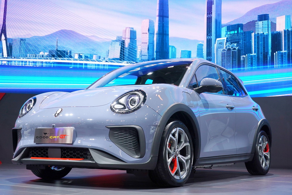 • ORA Good Cat GT สีเทา (Aqua Gray) จับคู่กับภายในสีดำ-แดง และสีขาว (Hamilton White) ในราคา 1,286,000 บาท