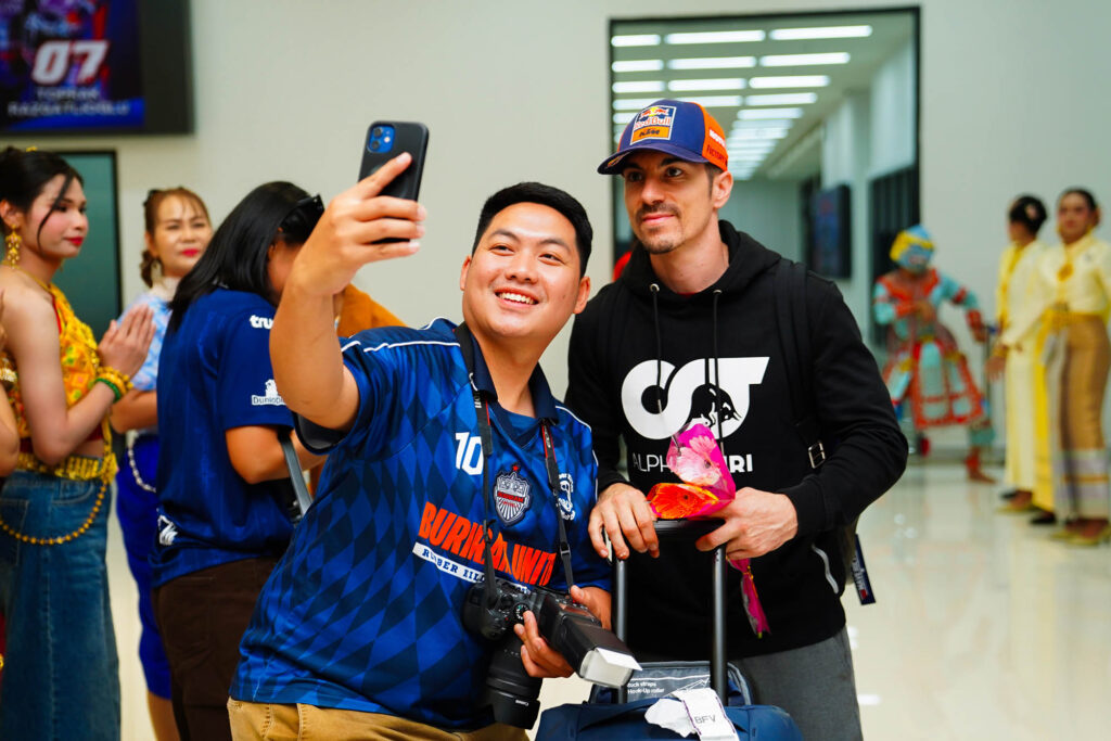 บรรยากาศการต้อนรับเป็นไปอย่างอบอุ่นด้วยการแสดงศิลปวัฒนธรรมไทย และขบวนลูกหลานชาวบุรีรัมย์ที่พร้อมใจกันมาในธีม “ห่มสไบใส่ยีนส์สุดเก๋” ที่กำลังเป็นไวรัลในขณะนี้ รวมทั้งยังมีเหล่าแฟนคลับที่มารอต้อนรับซูเปอร์สตาร์คนโปรดอย่างใกล้ชิด ซึ่งนักบิดมีสีหน้ายิ้มแย้มและพร้อมเต็มที่สำหรับการทดสอบสนามในช่วง Pre-Season Test ที่กำลังจะมาถึง
