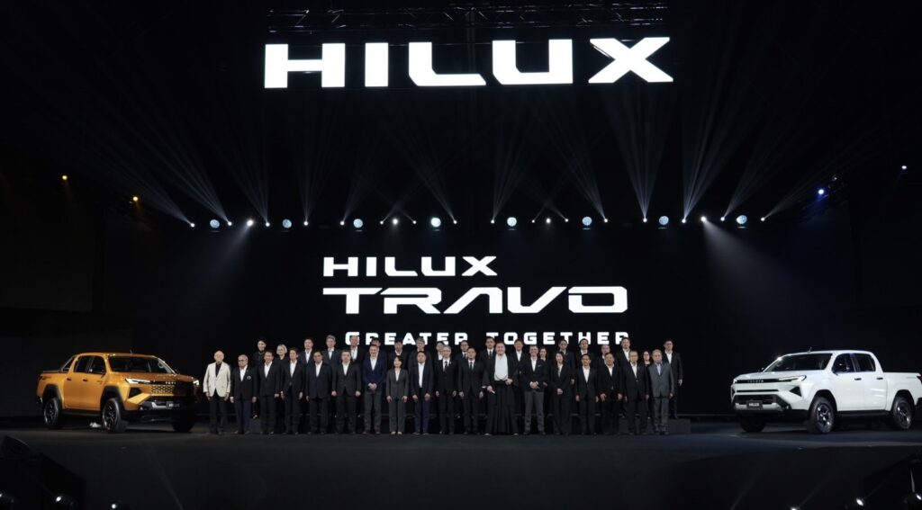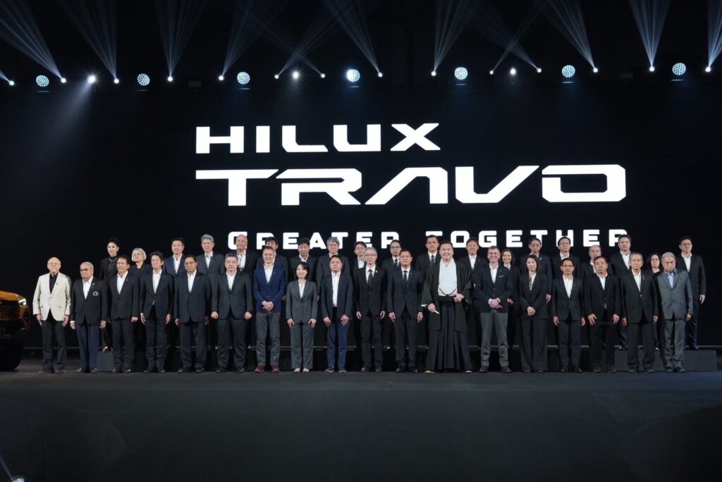 มร.ไซม่อน ฮัมฟรีส์ ประธานเจ้าหน้าที่บริหารด้านแบรนด์ บริษัท โตโยต้า มอเตอร์ คอร์ปอเรชัน ประเทศญี่ปุ่น / มร.นิค โฮจิออส ผู้จัดการอาวุโส โตโยต้าดีไซน์ ประเทศออสเตรเลีย / ดร.ธนกร วังบุญคงชนะ รัฐมนตรีว่าการกระทรวงอุตสาหกรรม / ดร.ณัฐพล รังสิตพล ปลัดกระทรวงอุตสาหกรรม / นายฐาปกรณ์ กุลเจริญ เลขานุการรัฐมนตรีว่าการกระทรวงอุตสาหกรรม / นางสาวจิรัฐิติกาล จันทราทิพย์ ประจำสำนักเลขาธิการนายกรัฐมนตรี / นายกลินท์ สารสิน ประธานคณะกรรมการ และ มร.โนริอากิ ยามาชิตะ กรรมการผู้จัดการใหญ่ พร้อมกับ นายศุภกร รัตนวราหะ รองกรรมการผู้จัดการใหญ่ บริษัท โตโยต้า มอเตอร์ ประเทศไทย จำกัด พร้อมด้วย นางสาวอัญญารัตน์ สุทธิเบญจกุล หัวหน้าวิศวกรระดับภูมิภาค บริษัท โตโยต้า มอเตอร์ เอเชีย (ประเทศไทย) จำกัด และ มร.ฮาคุโฮ โช เจ้าของแชมป์กีฬาซูโม่ระดับโยโกสุนะ (Yokozuna) ชื่อดัง ลำดับที่ 69 จากประเทศญี่ปุ่น ร่วมแถลงข่าวเปิดตัวรถกระบะมหาชนรุ่นใหม่ล่าสุด เป็นครั้งแรกของโลกที่ประเทศไทยกับ TOYOTA HILUX TRAVO และ HILUX TRAVO-e เมื่อวันที่ 10 พฤศจิกายน 2568 ณ ศูนย์นิทรรศการและการประชุมไบเทค