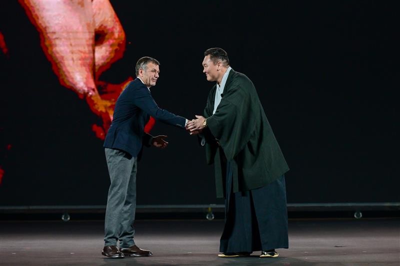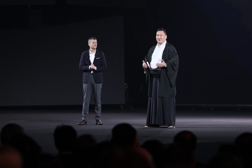 มร. ฮาคุโฮ โช กล่าวบนเวทีในการเปิดตัวครั้งนี้ว่า “เมื่อเดือนกันยายนที่ผ่านมา ผมได้มีโอกาสมาเยือนประเทศไทย เพื่อเผยแพร่กีฬาซูโม่สู่เวทีโลก ในการกลับมาประเทศไทยครั้งนี้ ผมรู้สึกยินดีเป็นอย่างยิ่ง และเมื่อ มร.อากิโอะ ชวนผมมาร่วมงานนี้ ผมก็ไม่ลังเลที่จะตอบทันที ซึ่งต้องขอขอบคุณอีกครั้งที่เชิญผมมาร่วมงานเปิดตัวรถระดับโลก ทั้งยังตั้งใจที่เผยแพร่ซูโม่สู่เวทีโลกเช่นกัน ทั้งนี้ กีฬาซูโม่คือความบริสุทธิ์ เป็นการฝึกฝนไม่เพียงแต่ร่างกาย แต่รวมถึงจิตใจด้วย ผมเชื่อว่าการส่งเสริมซูโม่จะช่วยสร้างความหวังในการขจัดการเลือกปฏิบัติและอคติทั่วโลก ผมเป็นชาวมองโกเลียโดยกำเนิด และในฐานะชาวมองโกเลียที่เป็นตัวแทนของญี่ปุ่นบนเวทีโลก ผมรู้สึกใกล้ชิดกับชาวไทยที่เป็นตัวแทนของญี่ปุ่นบนเวทีโลกผ่านโตโยต้า”