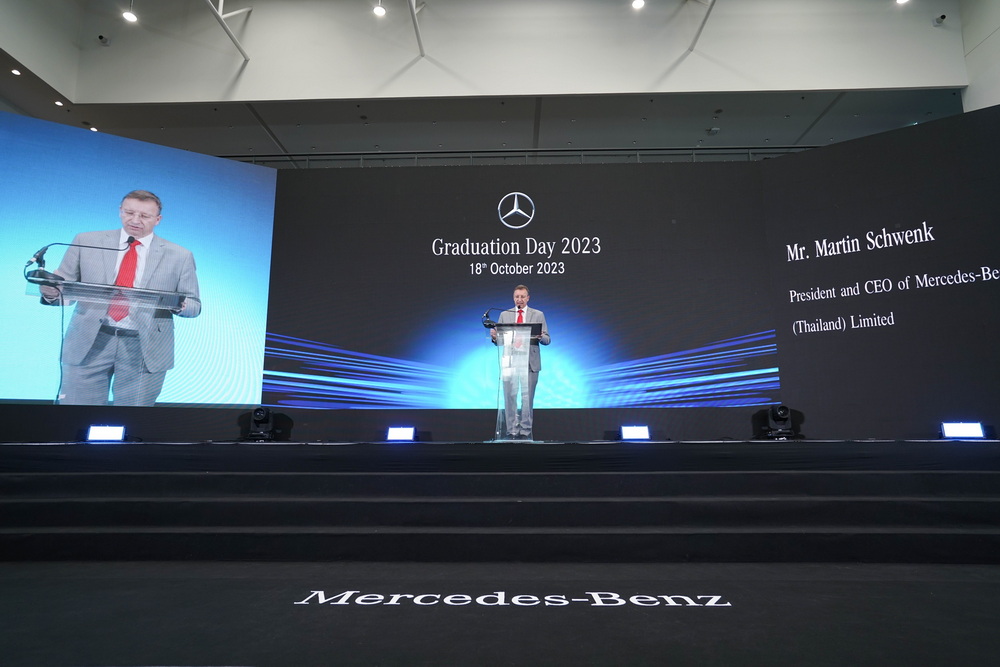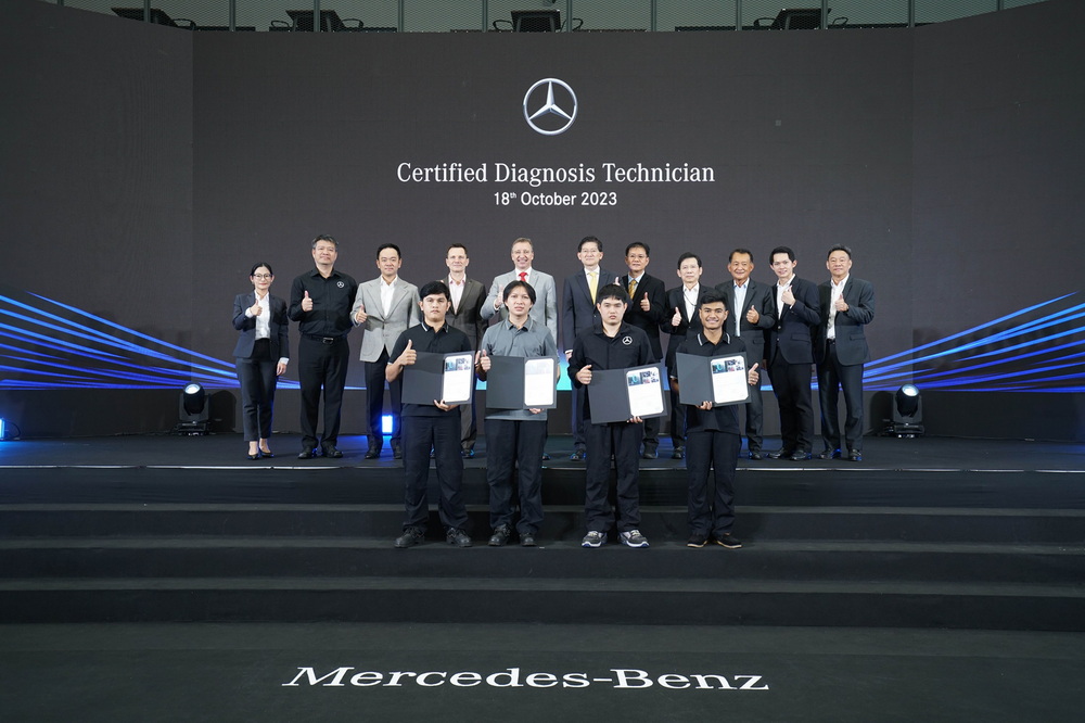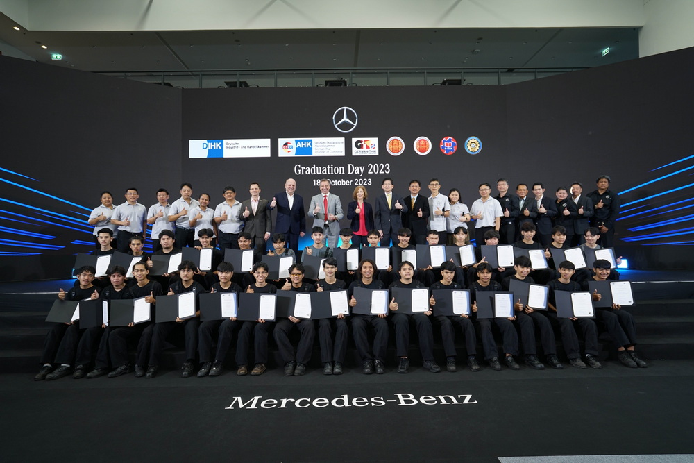 บริษัท เมอร์เซเดส-เบนซ์ (ประเทศไทย) จำกัด จัดพิธีมอบประกาศนียบัตรโครงการนักเรียนช่างฝึกหัดที่ผ่านการรับรองคุณภาพจากเมอร์เซเดส-เบนซ์ ตามมาตรฐานการศึกษาทวิภาคีเยอรมัน ในสาขาวิชาเมคคาทรอนิคส์ยานยนต์ เพื่อความเป็นเลิศในการศึกษาทวิภาคีและเพื่อพัฒนาศักยภาพ ของนักเรียนอาชีวะสู่การเป็นช่างเทคนิคมืออาชีพที่ผ่านการรับรองคุณภาพมาตรฐานเดียวกับประเทศเยอรมนี โดยมีประธานในพิธีคือ มร. มาร์ทิน ชเวงค์ ประธานเจ้าหน้าที่บริหารและกรรมการผู้จัดการใหญ่ บริษัท เมอร์เซเดส-เบนซ์ (ประเทศไทย) จำกัด พร้อมด้วย คุณเรจินา คิมเพล เลขานุการโท ฝ่ายเศรษฐกิจและพาณิชย์ สถานเอกอัครราชทูตเยอรมนีประจำประเทศไทย และ ดร. โรลันด์ ไวน์ ผู้อำนวยการบริหาร หอการค้าเยอรมัน-ไทย ร่วมกับตัวแทนสถาบันการศึกษาที่เข้าร่วมโครงการกับบริษัท เมอร์เซเดส-เบนซ์ (ประเทศไทย) จำกัด