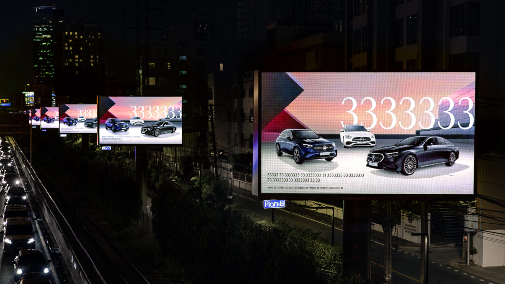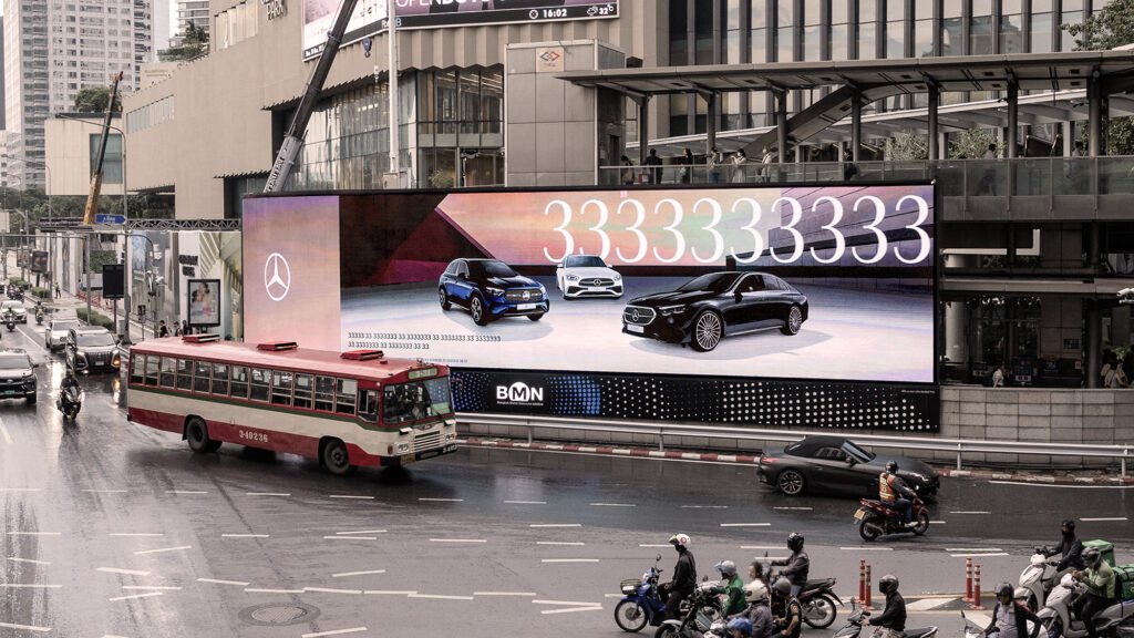 ซึ่งมาในรูปแบบของโฆษณาที่เนื้อหาทั้งหมดขึ้นเป็นเลข 3333333333 ไม่ว่าจะเป็นในส่วนของหัวข้อและรายละเอียดต่างๆ จนอาจเกิดข้อสงสัยมากมายว่าเลข 3 ที่ว่านี้ สื่อถึงอะไร แต่ชิ้นงานโฆษณาดังกล่าวก็ยังมีจุดสังเกตที่พอให้ผู้คนเดาออกว่าสิ่งนี้ต้องเกี่ยวข้องกับแบรนด์เมอร์เซเดส-เบนซ์