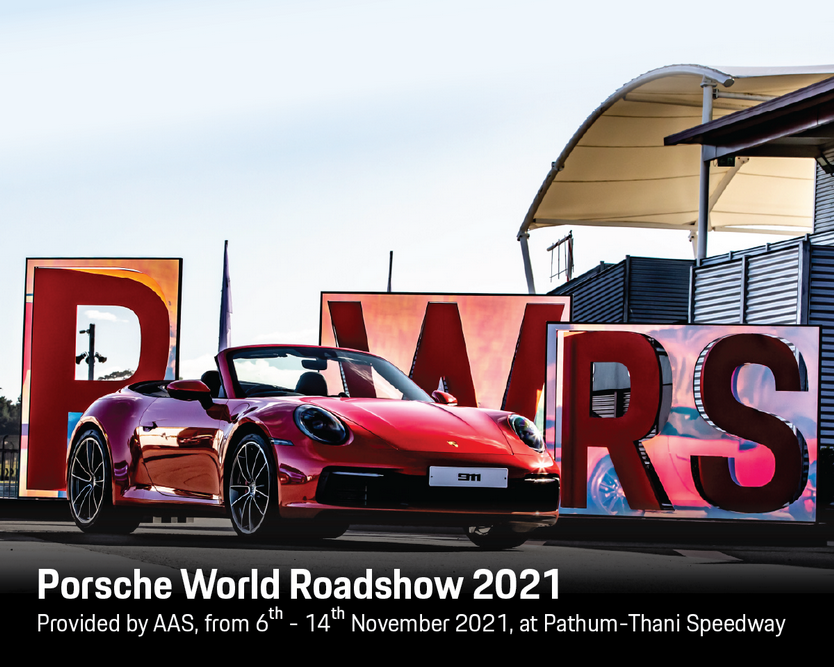 ปอร์เช่ ประเทศไทย โดย บริษัท เอเอเอส ออโต้ เซอร์วิส จำกัด ผู้นำเข้าและตัวแทนจำหน่ายรถยนต์ปอร์เช่อย่างเป็นทางการแต่เพียงผู้เดียวในประเทศไทย ชูกลยุทธ์สร้างประสบการณ์ทดสอบการขับขี่สนองนโยบาย เอเอเอสฯ ดูแลทั้งรถและคุณ (AAS Looking after YOU and your CAR) คว้าทีมผู้เชี่ยวชาญการขับขี่รถยนต์ปอร์เช่ (Porsche Instructor) มืออาชีพที่ผ่านการคัดสรรจากโรงงานปอร์เช่ประเทศเยอรมนี มาให้คำแนะนำและสอนเทคนิคการขับขี่อย่างใกล้ชิด เพื่อสร้างประสบการณ์ที่หาที่ไหนไม่ได้ พร้อมยกทัพรถปอร์เช่สายพันธุ์แรงครบครันทุกรุ่น จัดกิจกรรม Porsche World Roadshow 2021 เอาใจผู้ชื่นชอบความแรงคาดกระตุ้นยอดขายตลอดปี ได้ไม่ต่ำกว่า 1,500 คัน โดยกิจกรรมจะจัดขึ้น ระหว่างวันที่ 6 – 14 พฤศจิกายน 2564 ณ สนามปทุมธานี สปีดเวย์