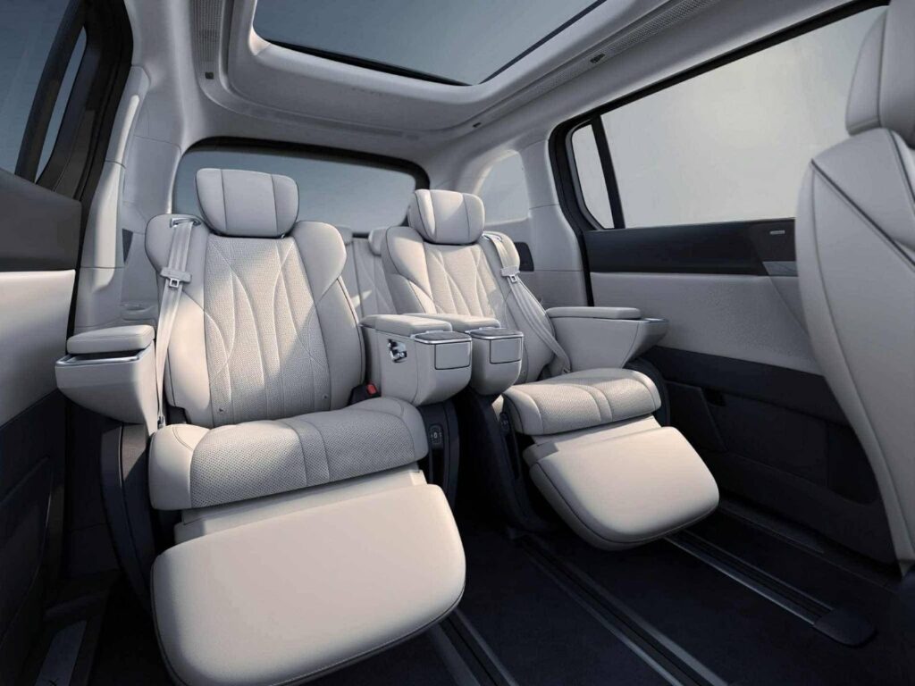 รถตู้ไฟฟ้าทรงสปอร์ตอัจฉริยะรุ่นท็อป ที่มาพร้อมความพิเศษยิ่งขึ้น โดดเด่นด้วยสีภายนอก Matte Gray ครั้งแรกในตลาด MPV ไฟฟ้า สอดรับกับเฉดสีภายในใหม่ Light Gray เบาะหนังแท้แนปป้า (Nappa) ผสานฟังก์ชั่น Zero-gravity Seat หรูหรามีระดับ เบาะนั่งแถวสองปรับไฟฟ้า 18 ทิศทาง พร้อมที่ชาร์จแบบไร้สาย 50 วัตต์ ล้ออัลลอยใหม่ดีไซน์แบบ Starlight Floating Wheels ขนาด 20 นิ้ว ผสานการขับเคลื่อนด้วยเทคโนโลยีแบตเตอรี่ 800 โวลต์ รองรับความเร็วในการชาร์จสูงสุดถึง 317 กิโลวัตต์ แบตเตอรี่ NCM ขนาด 101.5 กิโลวัตต์ ชาร์จไฟเต็มขับได้ไกลสุด 690 กิโลเมตร (NEDC) อีกทั้งยังมาพร้อมระบบเลี้ยว 4 ล้อ ให้รัศมีวงเลี้ยวเพียง 5.4 เมตร