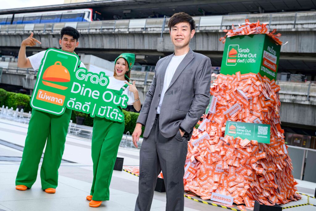“เพื่อเปิดตัวบริการ Dine Out เต็มรูปแบบอย่างเป็นทางการ แกร็บได้ส่งแคมเปญใหญ่ ‘ไม่พลาด ดีลดี มีโต๊ะ’ (The Missing Deals & Table) ในช่วงไตรมาสสาม โดยมุ่งสื่อสารถึงสิทธิประโยชน์ที่ผู้บริโภคอาจมองข้ามไป ทั้งมูลค่าของดีลส่วนลดค่าอาหารที่สูญไป หรือเวลาที่เสียไประหว่างรอโต๊ะเพราะไม่ได้จองล่วงหน้า โดยเราใช้กลยุทธ์การตลาด 360 องศาเพื่อสร้างการรับรู้ในวงกว้าง พร้อมปลุกกระแส FOMO ผ่านการใช้สื่อและกิจกรรมออฟไลน์สุดสร้างสรรค์ทั่วกรุงเทพฯ อาทิ กองดีลมหึมาใจกลางลานพาร์คพารากอน รถบรรทุกดีลที่วิ่งทั่วกรุงเทพฯ และบิลบอร์ดในย่านร้านอาหารยอดนิยม พร้อมจัดเต็มแคมเปญโฆษณาผ่านช่องทางโซเชียลมีเดีย เพื่อให้เข้าถึงผู้บริโภคกลุ่มเป้าหมายอย่างครอบคลุม” นายพนมกร กล่าวเสริม