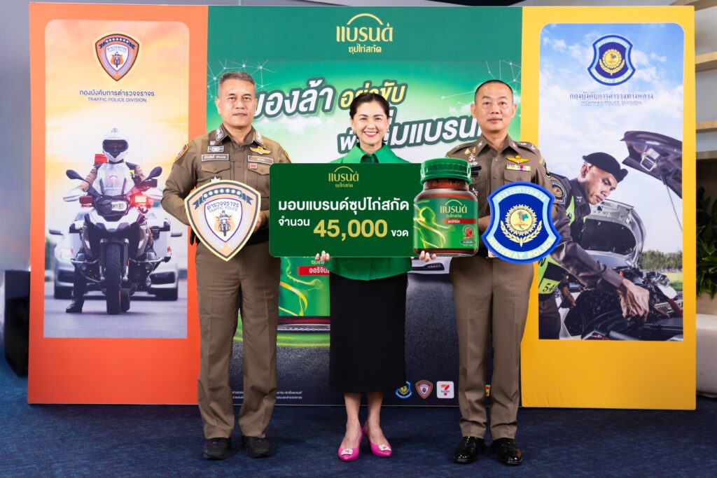 นางสาวจตุรพร ธนาพรสังสุทธิ์ รองประธานบริหารอาวุโสฝ่ายการตลาด ประเทศไทยและอินโดไชน่า บริษัท ซันโทรี่ เบเวอเรจ แอนด์ ฟู้ด (ประเทศไทย) จำกัด ผู้นำตลาดอาหารเสริมสุขภาพภายใต้ตราผลิตภัณฑ์แบรนด์ (BRAND’S) ในประเทศไทยและอินโดไชน่า กล่าวว่า “ในช่วงเทศกาลสงกรานต์ แบรนด์ซุปไก่สกัดเดินหน้าทำหน้าที่เป็นตัวช่วยเตรียมความพร้อมให้ผู้ขับขี่ ภายใต้โครงการรณรงค์ขับขี่ปลอดภัย ‘สมองล้าอย่าขับ พักดื่มแบรนด์’ ที่มุ่งเน้นลดความเสี่ยงของการเกิดอุบัติเหตุจากการขับรถทางไกลในช่วงเทศกาลสำคัญของประเทศ เนื่องจากสถิติการเกิดอุบัติเหตุทางถนนในช่วง 7 วันอันตรายของศูนย์อำนวยการความปลอดภัยทางถนน ระบุยอดสะสมเฉลี่ยย้อนหลัง 3 ปีนั้นสูงถึง 2,055 ครั้ง สะท้อนให้เห็นว่าอุบัติเหตุในช่วงเทศกาลยังคงอยู่ในระดับที่สูง โดยมีความอ่อนล้าในการขับขี่ระยะไกลเป็นหนึ่งในปัจจัยเสี่ยงสำคัญ ด้วยเหตุนี้ แบรนด์ซุปไก่สกัดจึงมุ่งมั่นสานต่อโครงการดังกล่าวมาอย่างต่อเนื่องตั้งแต่ปี 2550 ทั้งนี้ ตลอดระยะเวลาที่ผ่านมา เราได้สนับสนุนผลิตภัณฑ์แบรนด์ซุปไก่สกัดเพื่อแจกจ่ายให้กับประชาชนทั่วประเทศรวมแล้วกว่า 1.8 ล้านขวด เพื่อร่วมรณรงค์ลดอุบัติเหตุ สร้างความตระหนักรู้เรื่องการขับขี่อย่างปลอดภัย และส่งเสริมความพร้อมของร่างกายก่อนออกเดินทาง สะท้อนค่านิยมองค์กรเรื่อง ‘การตอบแทนกลับคืนสู่สังคม’ (Giving Back to Society) ควบคู่กับการให้ความสำคัญด้านความปลอดภัยบนท้องถนน สำหรับเทศกาลสงกรานต์ปี 2569 แบรนด์ซุปไก่สกัดได้ร่วมมือกับ ‘กองบังคับการตำรวจทางหลวง’ ‘กองบังคับการตำรวจจราจร’ และ ‘ตำรวจภูธรจังหวัดเชียงใหม่’ เดินหน้าสานต่อโครงการฯ เพื่อรณรงค์ให้ประชาชนเตรียมความพร้อมทางร่างกายก่อนการเดินทาง และไม่ฝืนขับทางไกลเมื่อรู้สึกอ่อนล้า พร้อมมอบแบรนด์ซุปไก่สกัดที่มีคุณประโยชน์จากคาร์โนซีนและวิตามินบี 12 ซึ่งมีส่วนช่วยในการทำงานตามปกติของสมองและระบบประสาท จำนวน 45,000 ขวด ให้แก่เจ้าหน้าที่ เพื่อแจกจ่ายแก่ประชาชนที่ต้องขับขี่ทางไกลในช่วงเทศกาลสงกรานต์ ระหว่างวันที่ 11-15 เมษายน 2569 ผ่านจุดบริการประชาชนบนเส้นทางสายหลักทั่วประเทศ แบ่งเป็นจุดบริการประชาชนบนทางหลวงสายหลัก 4 จุด ได้แก่ จุดที่ 1 สถานีตำรวจทางหลวง 4 กองกำกับการ 5 (เชียงใหม่) จุดที่ 2 สถานีตำรวจทางหลวง 6 กองกำกับการ 1 (ชัยนาท-สิงห์บุรี) จุดที่ 3 สถานีตำรวจทางหลวง 1 กองกำกับการ 8 อ่อนนุช ลาดกระบัง (จุดพักรถมอเตอร์เวย์บางปะกงฉะเชิงเทรา-ชลบุรี) และจุดที่ 4 สถานีตำรวจทางหลวง 2 กองกำกับการ 2 (เพชรบุรี) สถานีตำรว