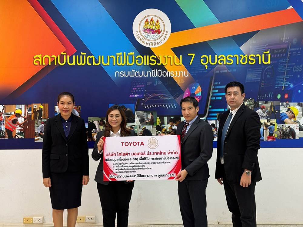 บริษัท โตโยต้า มอเตอร์ ประเทศไทย จำกัด โดยศูนย์การศึกษาและฝึกอบรมโตโยต้า ร่วมพิธีเปิดการฝึกอบรมเตรียมเข้าทำงาน รุ่นที่ 2/2567 พร้อมทั้งบริจาควัสดุฝึก ณ สถาบันพัฒนาฝีมือแรงงาน 7 อุบลราชธานี โดยมี นางสาวบุปผา เรืองสุด อธิบดีกรมพัฒนาฝีมือแรงงาน ภายใต้โครงการเพิ่มทักษะด้านอาชีพแก่นักเรียนที่ไม่ได้เรียนต่อหลังจบการศึกษาภาคบังคับ และตรวจเยี่ยมการฝึกอบรมยกระดับฝีมือ หลักสูตรช่างซ่อมตัวถังและสีรถยนต์