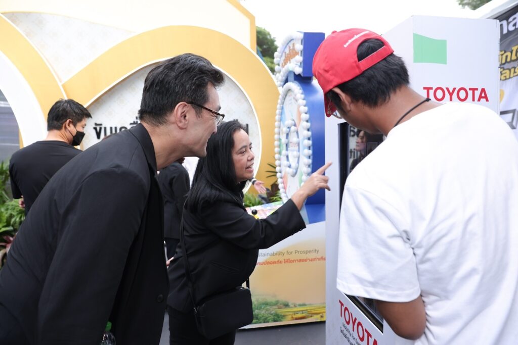 - ด้านเศรษฐกิจ นำเสนอภารกิจในการยกระดับธุรกิจฐานราก ผ่านโครงการ โตโยต้า ธุรกิจชุมชนพัฒน์ ที่ส่งต่อองค์ความรู้ของโตโยต้าสู่ธุรกิจชุมชน รวมถึง Togeta Solutions ที่เน้นการแก้ปัญหาให้ผู้ประกอบการไทย (SMEs) และ Haikoon (ให้คุณ) ที่มุ่งเพิ่มโอกาสให้สินค้าชุมชน พร้อมสนับสนุนเกษตรกรไทยอย่างยั่งยืน ผ่าน Togeta Coffee และ โรงสีข้าวรัชมงคล