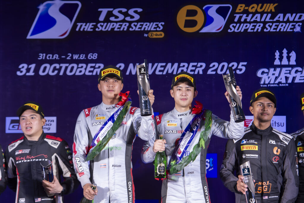 อีกหนึ่งคลาสที่ดุเดือดไม่แพ้กันคือรุ่น Supercar GT4 ของทีม AAS Motorsport ที่โชว์ฟอร์มร้อนแรงตลอดสุดสัปดาห์ เริ่มด้วยรถแข่งหมายเลข 1 ของคู่ทีมเมทฟอร์มดุ “บูม กันตธีร์” และ “มิกกี้ คมิก” ที่ทำผลงานโดดเด่นตั้งแต่รอบซ้อม ด้วยความเร็วต่อรอบที่กดเวลาได้เร็วที่สุด ส่งผลให้ในรอบ Qualifying “บูม กันตธีร์” จะได้ออกสตาร์ทจากตำแหน่ง Pole Position ส่วน “มิกกี้ คมิก” คว้ากริดที่ 2 มาครอง และเมื่อเกม Race 9 มาถึงทั้งคู่ขับเคี่ยวอย่างเฉียบขาด บุกบู๊เต็มพิกัด ซิ่งทะยานเข้าเส้นชัยเป็นอันดับหนึ่ง (P1) ผงาดขึ้นเป็น The Winner ของรุ่น Supercar GT4 อย่างสมศักดิ์ศรี อย่างไรก็ตาม ความท้าทายที่ยิ่งใหญ่ยังรออยู่ใน Race 10 ซึ่งเป็นเรซชี้ชะตาตัดสินแชมป์ประจำปี แม้จะเดินหน้ากดคันเร่งเต็มพลัง ไล่บี้คู่แข่งอย่างไม่ลดละ แต่ด้วยเวลาที่เหลือไม่เพียงพอ ทำให้จบการแข่งขันในอันดับที่ 5 (P5) แม้จะพลาดตำแหน่งแชมป์ประจำปีไปอย่างน่าเสียดาย แต่ด้วยคะแนนสะสมที่สม่ำเสมอตลอดฤดูกาล ทั้งคู่ยังคงสร้างความภูมิใจให้กับทีม ด้วยการคว้าตำแหน่ง “รองแชมป์ประจำปี 2025” รุ่น Supercar GT4 มาครองได้อย่างยอดเยี่ยม