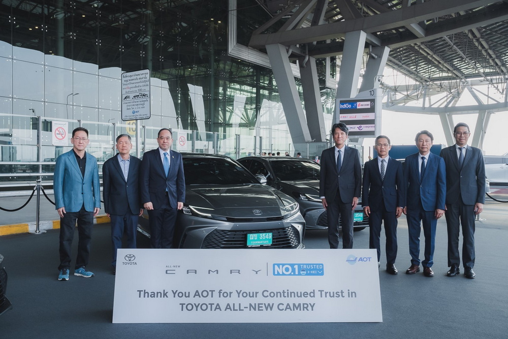บริษัท โตโยต้า มอเตอร์ ประเทศไทย จำกัด ขอขอบคุณ บริษัท ท่าอากาศยานไทย จำกัด (มหาชน) หรือ AOT ที่มอบความไว้วางใจ ในการเลือกใช้ โตโยต้า คัมรี อย่างต่อเนื่อง ตลอด 19 ปี นับตั้งแต่เปิดทำการ เมื่อเดือนกันยายน พ.ศ 2549 และในปีพ.ศ. 2568 นี้ ทาง AOT ยังคงเชื่อมั่น และมอบความไว้ใจให้กับโตโยต้า โดยเลือกใช้ ALL-NEW CAMRY HEV SMART สีเงิน Precious Metal ใหม่จำนวน 50 คัน เพื่อเข้าร่วมเป็นส่วนหนึ่งของรถลีมูซีนประจำสนามบิน หรือ AOT Limousine ในการให้บริการรับส่งผู้โดยสารที่ท่าอากาศยานสุวรรณภูมิ อันเป็นการตอกย้ำความเชื่อมั่น และความไว้วางใจที่มีให้กับยนตรกรรมที่มาพร้อมเทคโนโลยีไฮบริดของโตโยต้า ที่สามารถมอบความสะดวกสบาย ทั้งยังปลอดภัยมั่นใจได้ ตลอดการใช้งาน ภายใต้แนวคิด “TOYOTA NO.1 TRUSTED HEV ไฮบริดที่ใช่มั่นใจทุกเจน”