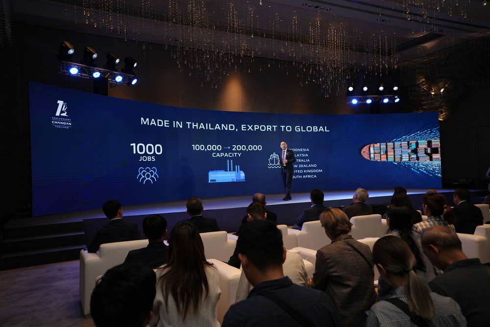 “สำหรับการก่อสร้างโรงงานที่จังหวัดระยองและจะเป็นศูนย์กลางการผลิตรถยนต์พวงมาลัยขวาของ CHANGAN ทั่วโลก ด้วยการลงทุนกว่า 10,000 ล้านบาท โดยดำเนินการก่อสร้างไปแล้วกว่า 80% และมีกำหนดเริ่มการผลิตในไตรมาสแรกของปี 2025 โดย CHANGAN ได้ใช้ซัพพลายเออร์ท้องถิ่นกว่า 300 ราย และมีแผนที่จะเพิ่มอัตราส่วนชิ้นส่วนท้องถิ่นในรุ่นที่ผลิตในประเทศต้นปีหน้าถึง 50% ในด้านบุคลากรท้องถิ่น ได้ว่าจ้างพนักงานเกือบ 300 คนในกรุงเทพ รวมถึงที่จังหวัดระยอง คิดเป็นร้อยละ 70% ของพนักงานทั้งหมด และยังมีแผนที่จะส่งพนักงานที่มีทักษะประมาณ 100 คนไปฝึกอบรมที่ฉงชิ่งในเดือนกันยายนนี้ด้วย” นายเซิน ซิงหัว กล่าว และกล่าวต่อไปว่า