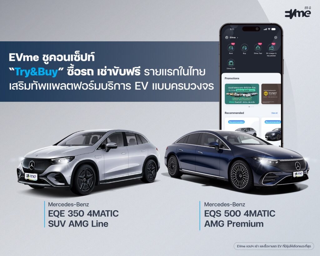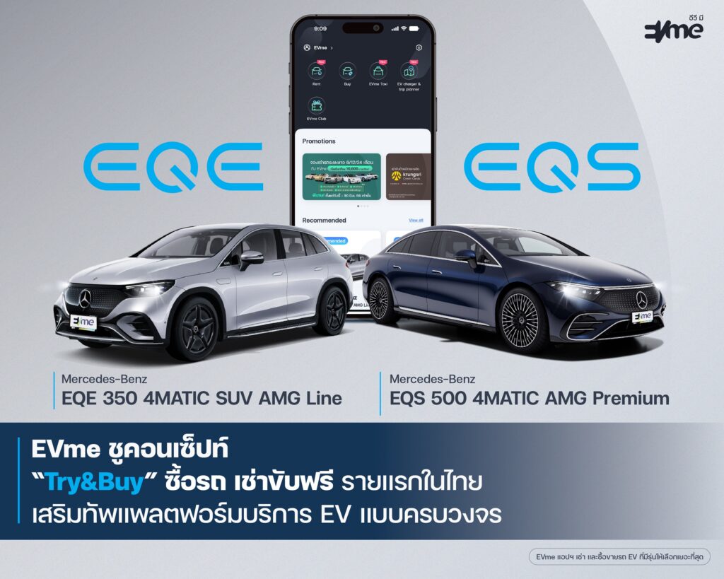 EVme ร่วมกับ Benz พระราม 3 เสริมทัพพอร์ต EV เปิดให้เช่า EQE และ EQS ผ่านแอปฯ EVme มอบทางเลือกใหม่สำหรับผู้ใช้ EV ก่อนตัดสินใจซื้อ