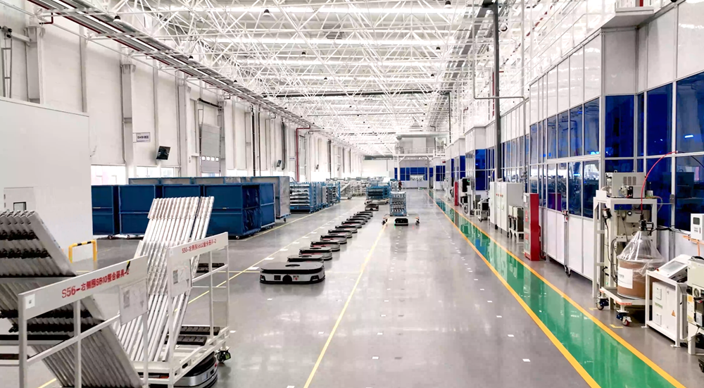 กระจกของชุดกระจกบังลมด้านหน้าและด้านหลังใช้โซลูชันที่ครบวงจรในอุตสาหกรรม ด้วยหุ่นยนต์ในการประกอบอัตโนมัติที่มีความแม่นยำสูง จำนวน 9 ตัว ประกอบด้วย ระบบเคลื่อนย้ายอัตโนมัติ ระบบทำความสะอาดกระจก ระบบพ่นสีรองพื้นกระจกอัตโนมัติ ระบบติดกาว และระบบประกอบอัตโนมัติ ที่มีความแม่นยำในระดับ 0.05 มิลลิเมตร สามารถประกอบได้สูงสุด 60 คันต่อชั่วโมง พร้อมกันหลายรุ่นในไลน์ผลิตเดียวกัน ด้วยคุณภาพสูงที่เสถียร พร้อมเทคโนโลยีการถ่ายภาพ ประมวลผลภาพ 3 มิติ และระบบอัลกอริธึมวิเคราะห์คุณภาพการประกอบแบบเรียลไทม์ เพื่อตรวจหาตำหนิจากการเคลือบ ซึ่งสามารถรับประกันประสิทธิภาพ และความสม่ำเสมอของผลิตภัณฑ์ได้แม่นยำ