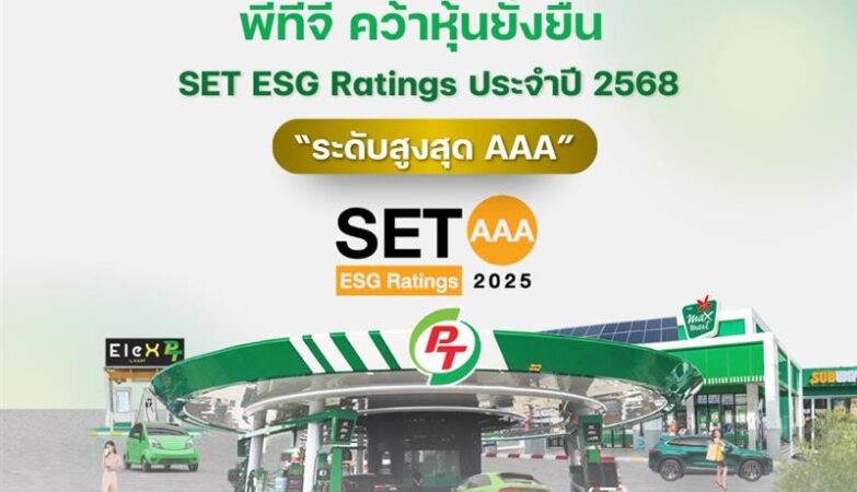 PTG คว้าหุ้นยั่งยืน “ระดับสูงสุด AAA” จาก SET ESG Ratings ปี 2568